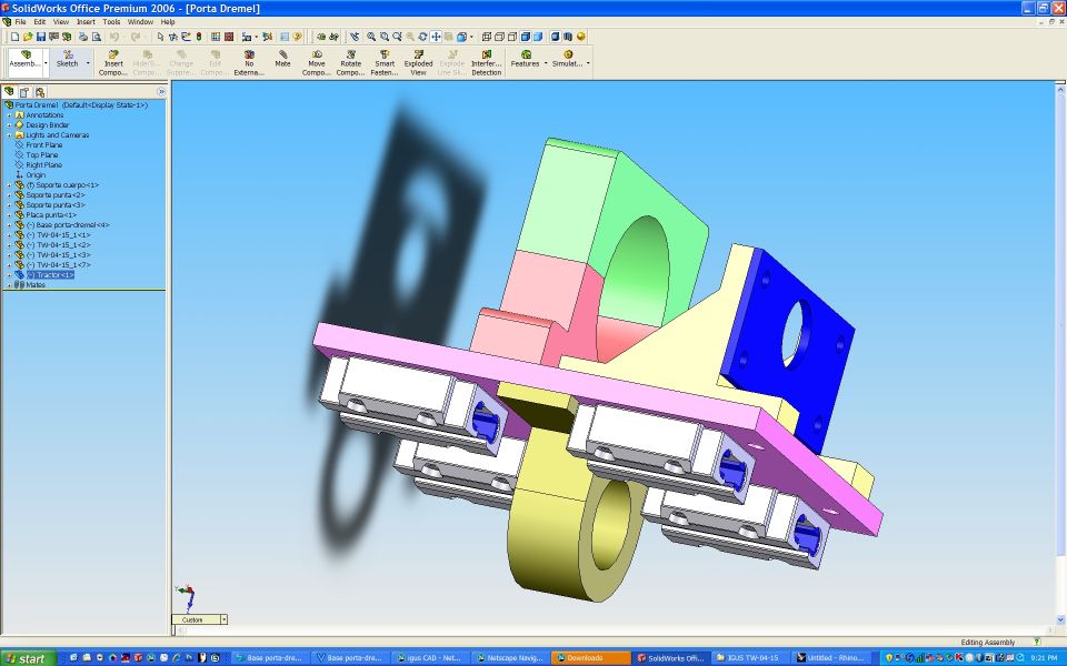 Porta Dremel con guias IGUS y partes maquinadas en 2D.
